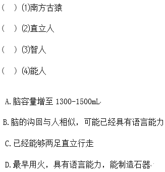 22、将下列人类进化各阶段的名称与他们的特征搭配起来