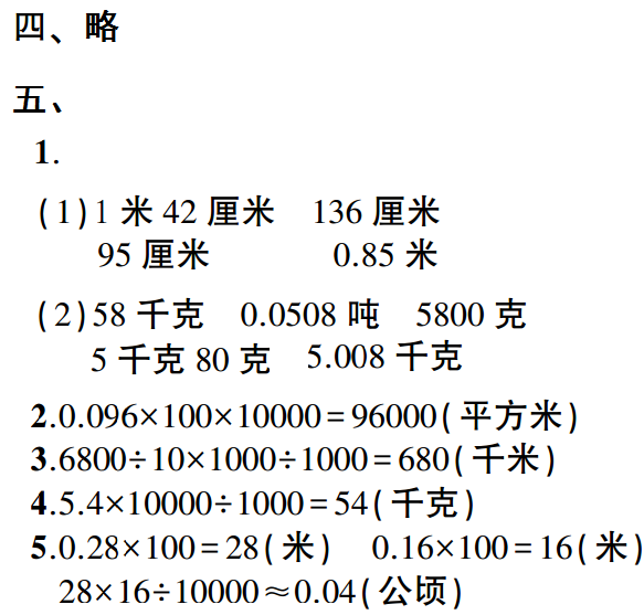 5.一块长方形菜地的长和宽都缩小到原来的1100后,在纸上画出的长和宽分别为0.28米和0.16米,请算出这块菜地的实际面积是多少公顷。(保留两位小数)