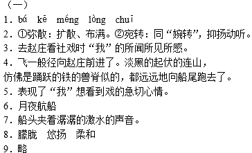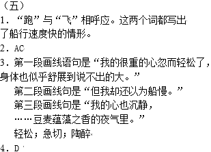 4.本段主要写月夜行船,突出了“我”急于看戏的迫切心情。从文中的哪些方面可以看出?