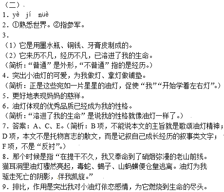 F.“我不曾留恋,更不曾沉迷”,反衬了小油灯在我人生历程中的重要作用。