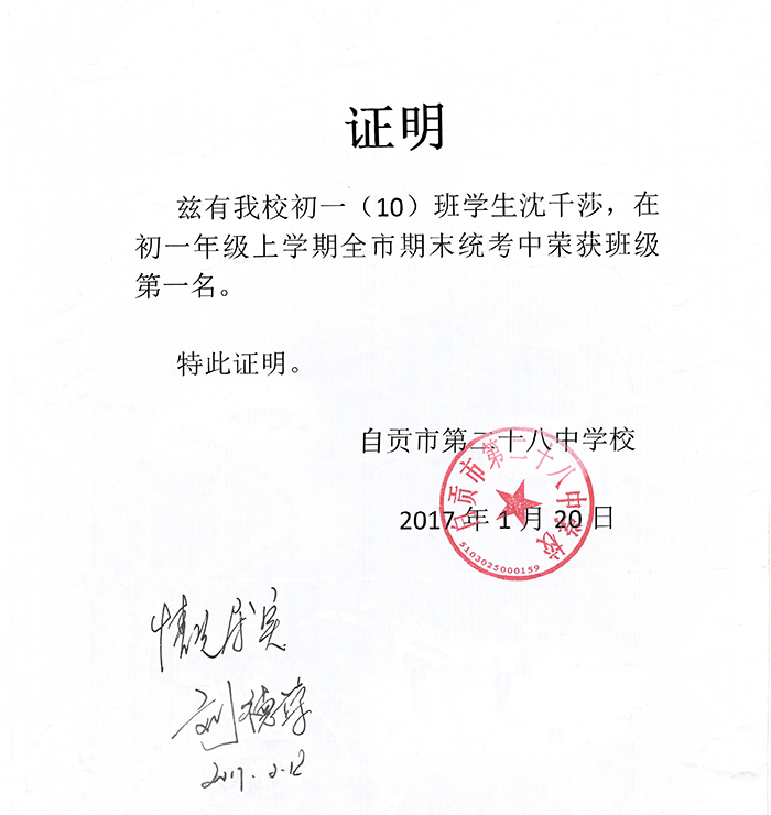 2016年12月报名清大名师网校学习,并在2016下学年期末考试中考取班级第一名。在2017年4月10日,由
