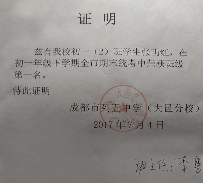 2017年3月报名清大名师网校学习,并在2017上学年期末考试中考取班级第一名。在2017年11月11日,由李发友老师为其颁发奖学金。