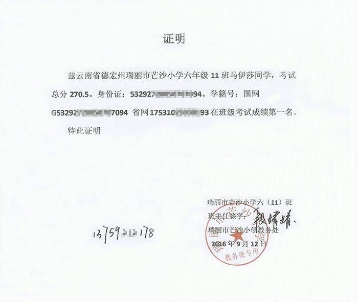 云南省德宏州瑞丽市芒沙小学六年级