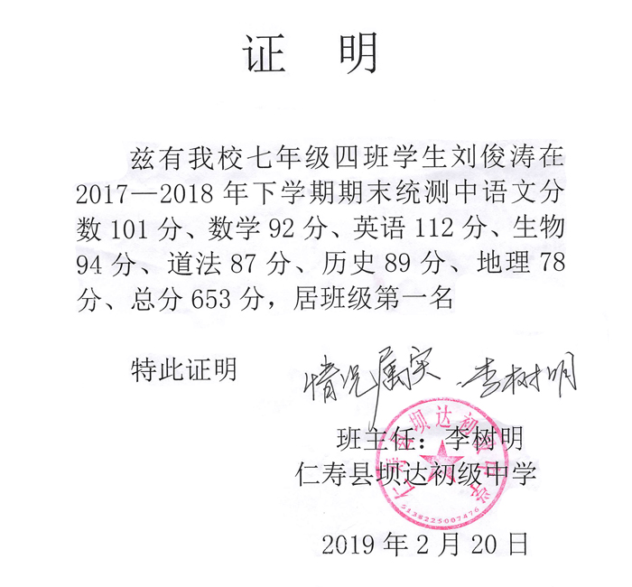 2018年下学年期末考试中
