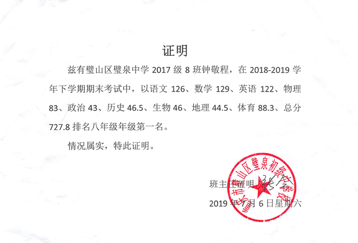 2019年上学年期末考试中