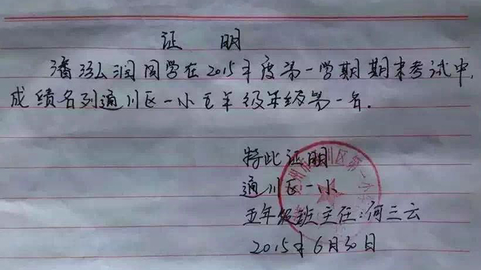 就读于达州市通川区第一小学,于