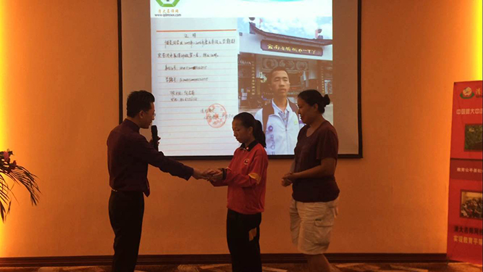 日,由杨和军老师为其颁发奖学金。