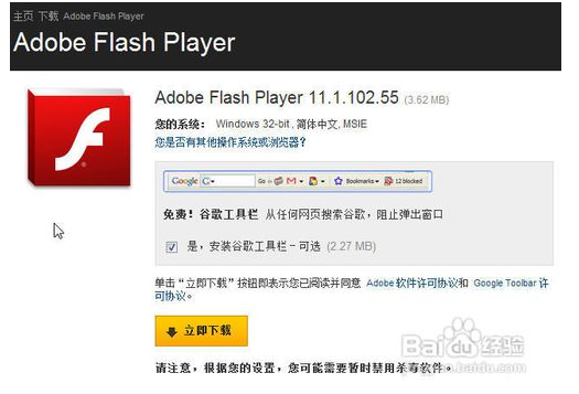 既然看在线视频几乎都是用flash播放器,那么出问题也就出在flash播放器上面。假如打开视频时提示你”你未安装FlashPlayer"或者“你的FlashPlayer版本太低”或者干脆一片白角落里一个x,这个时候你就要果断地去升级你的flash播放器了,去Adobe的官网下载安装:http://get.adobe.com/cn/flashplayer/