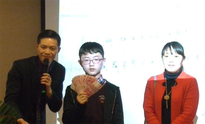 老师为其颁发奖学金。