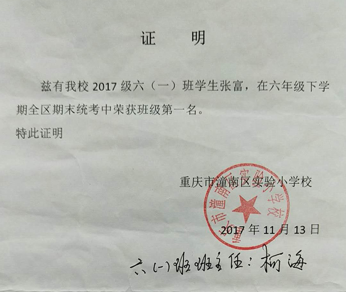 现就读于重庆市潼南区实验一小,于2017年4月报名参加清大名师网校,在2017年上学年期末考试考试考取班级第一名。在2017年12月2日,由清大名师网校为其颁发奖学金。