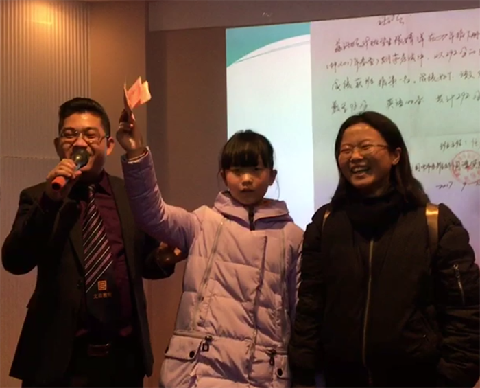 老师为其颁发奖学金。