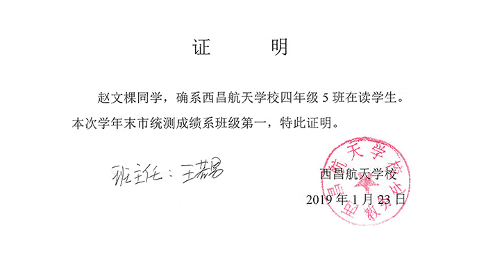 清大名师网校成果:祝贺四川省凉山州赵文棵同学考取班级第一名