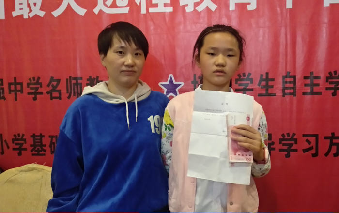 老师为其颁发奖学金。
