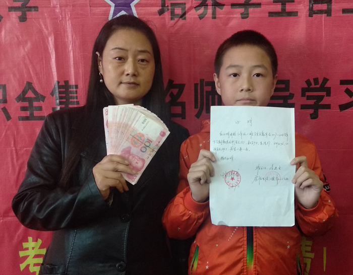 老师为其颁发奖学金。