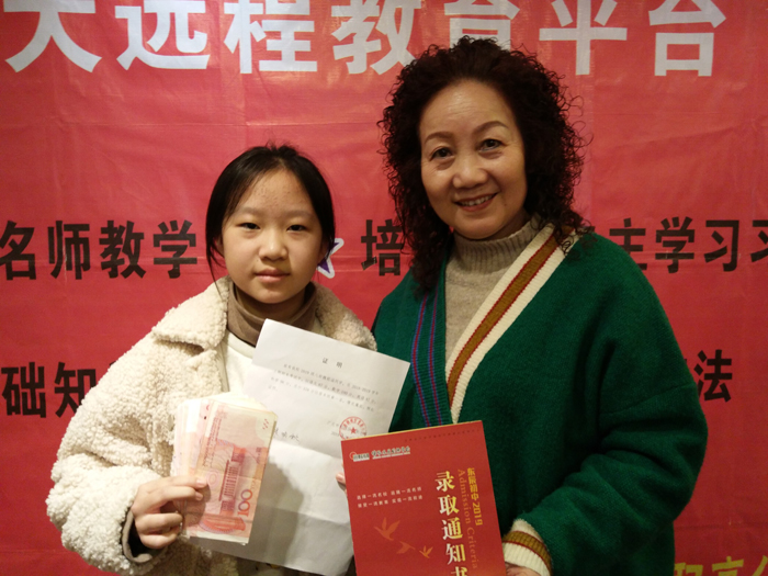 祝贺四川省广元市魏妮涵同学考取班级第一名