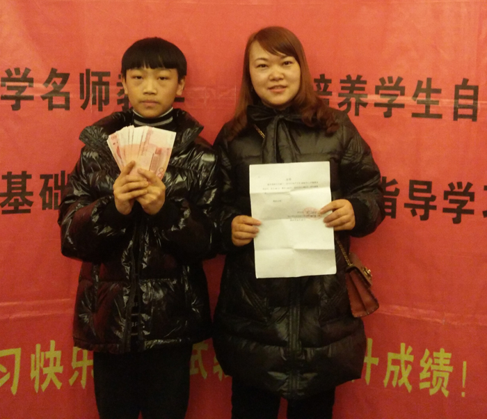 老师为其颁发奖学金。